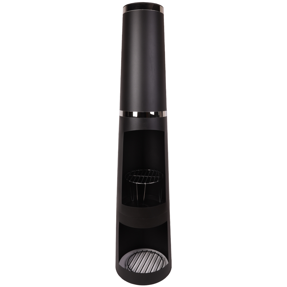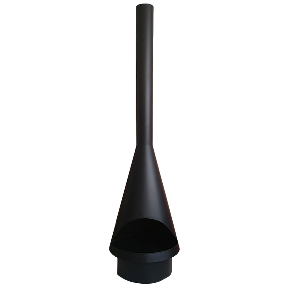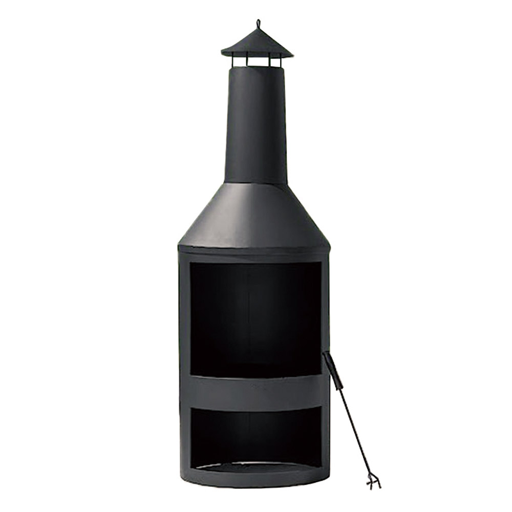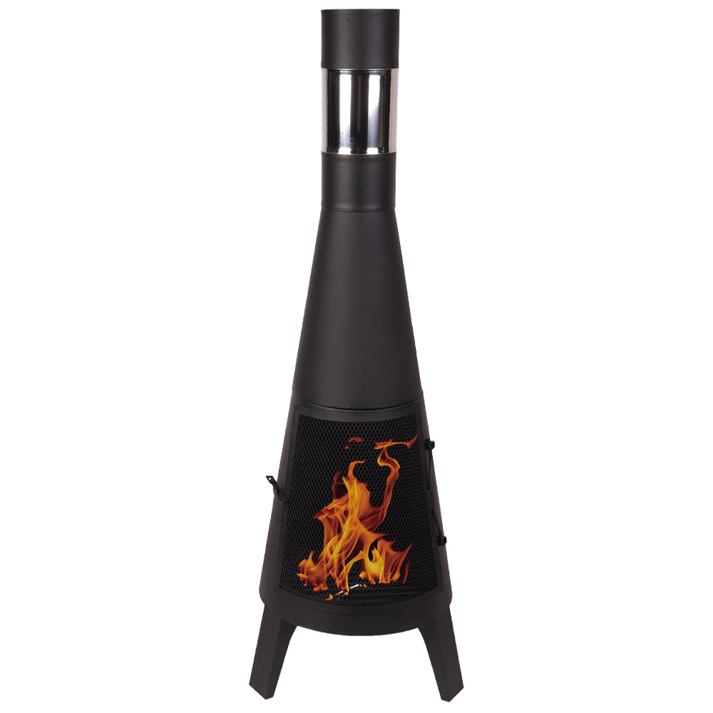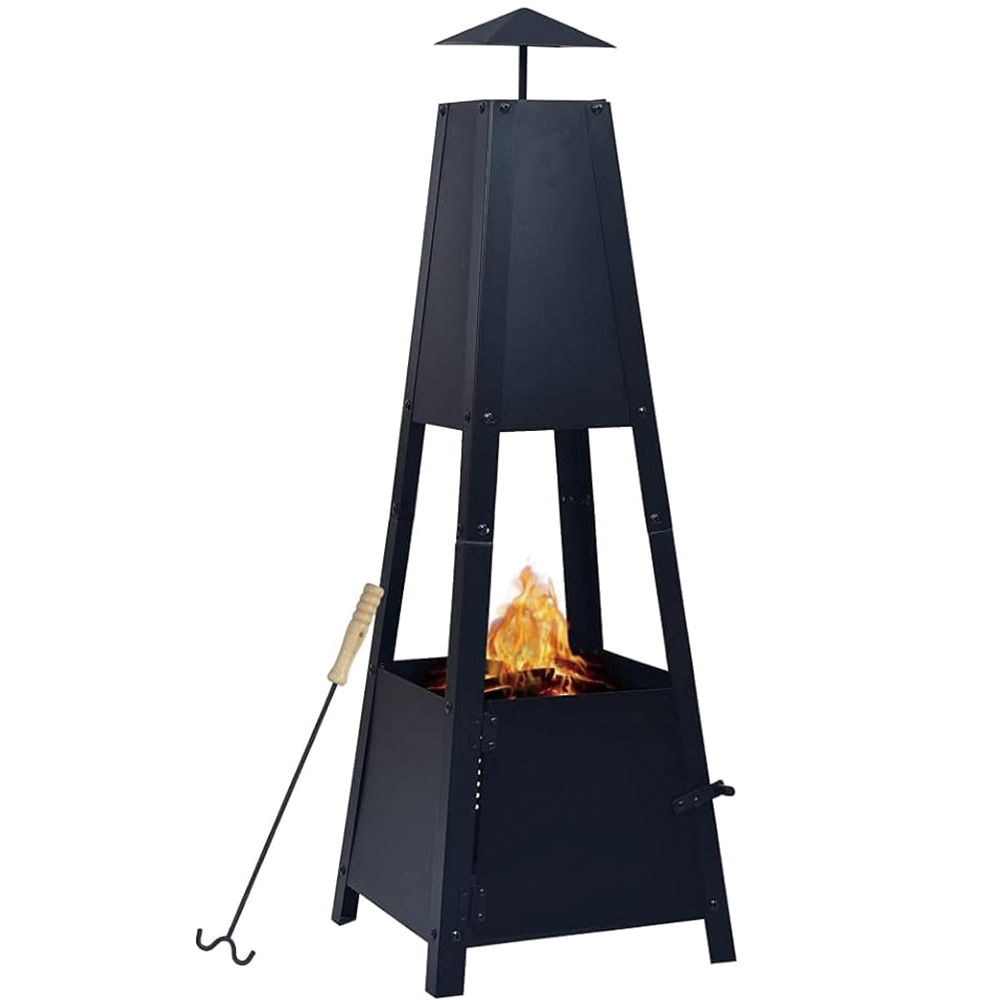 Modern black steel outdoor chiminea