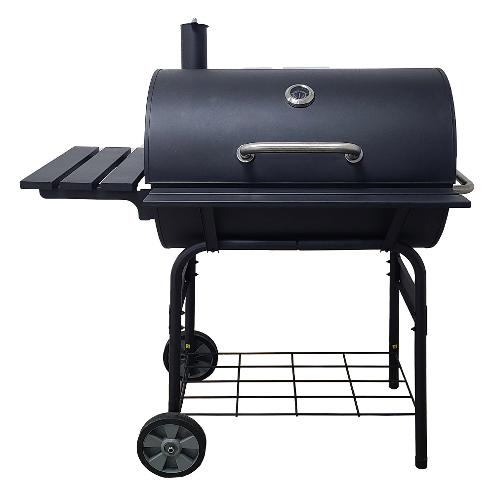 Charcoal BBQ smoker grill with Side Shelf - Black