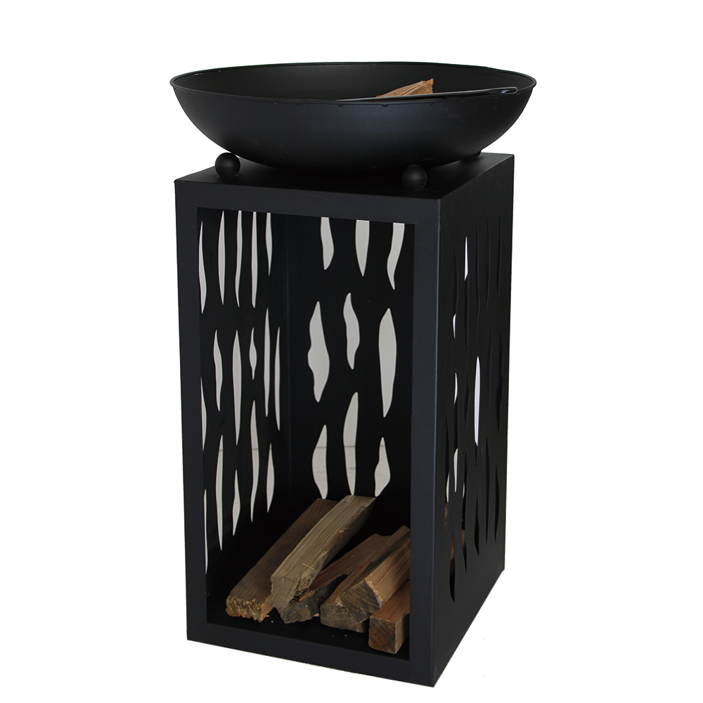 Modern design steel stand fire pit with log storage