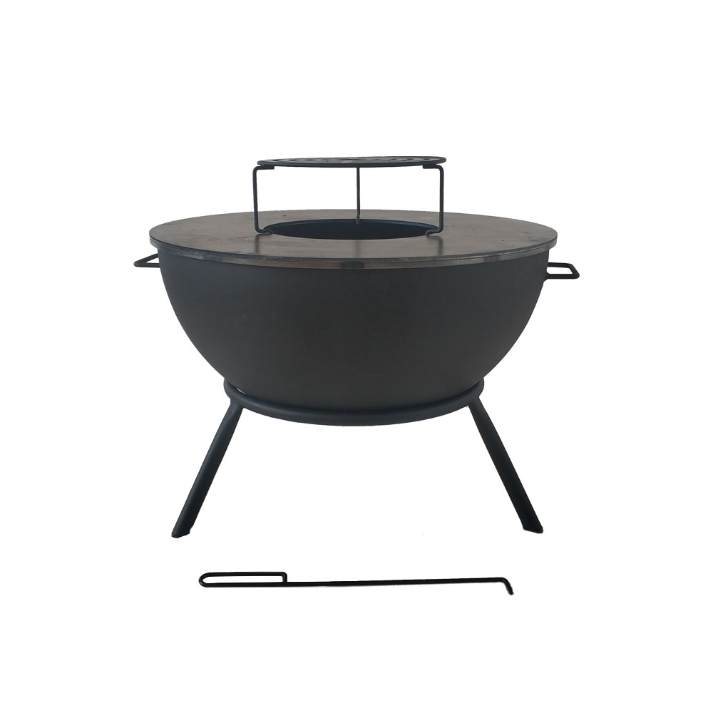 Black carbon steel cooking BBQ firepit for outdoor