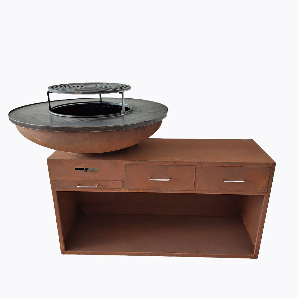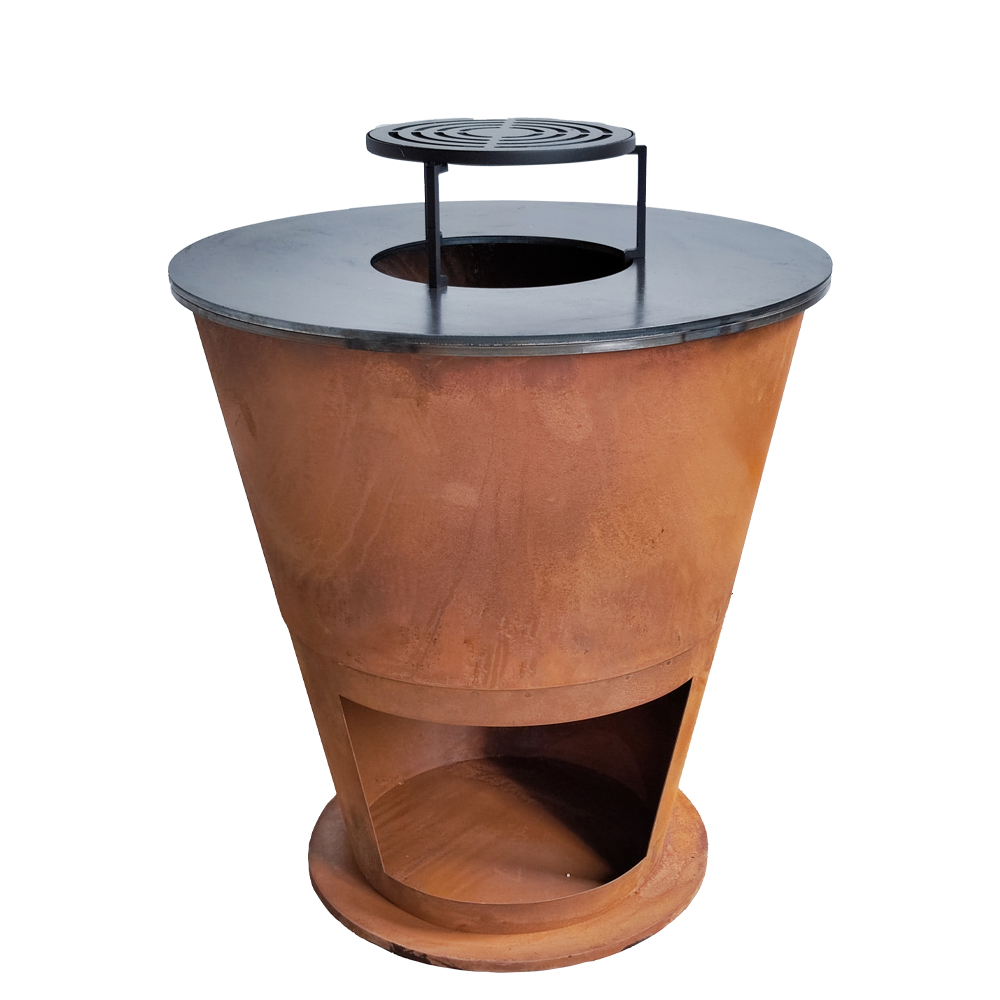 Rusty Corten steel cooking BBQ firepit for outdoor