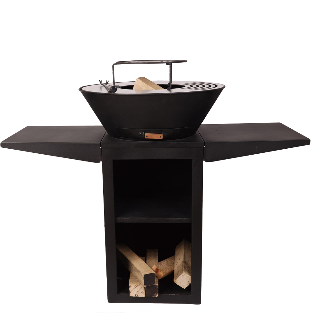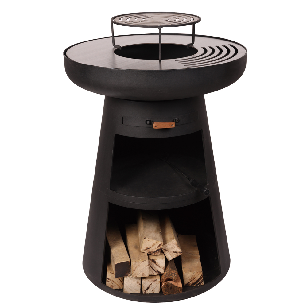 Plancha fire pit BBQ withlog storage