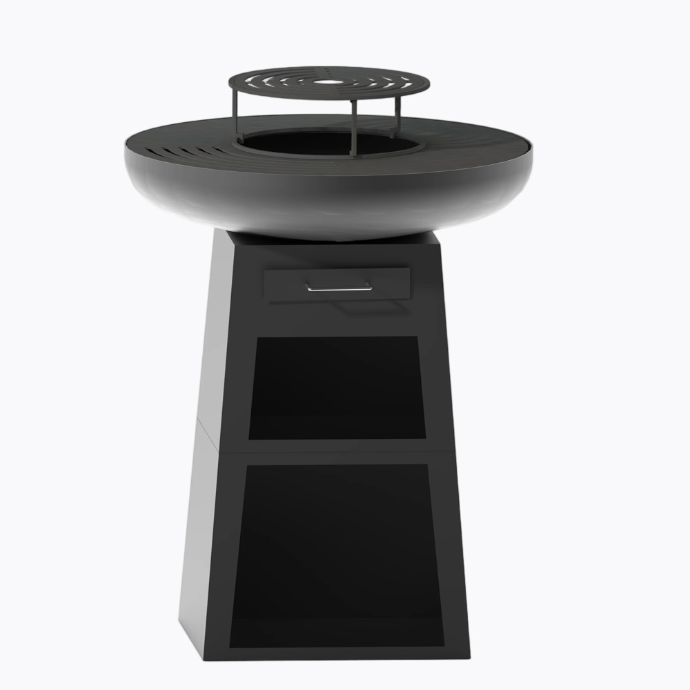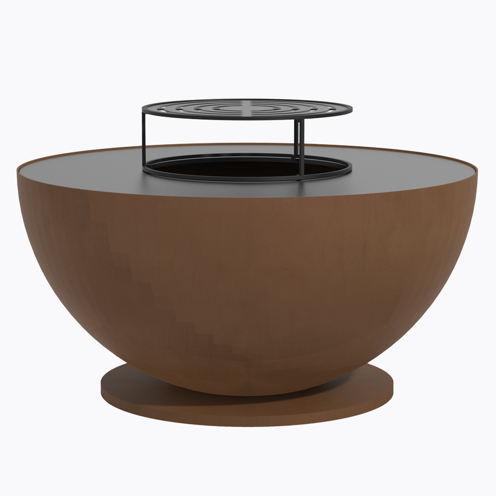 85cm Corten steel fire bowl with Plancha Round base