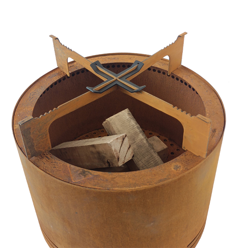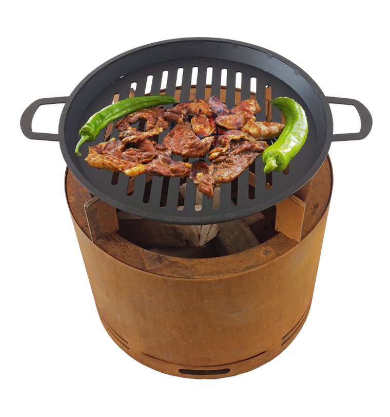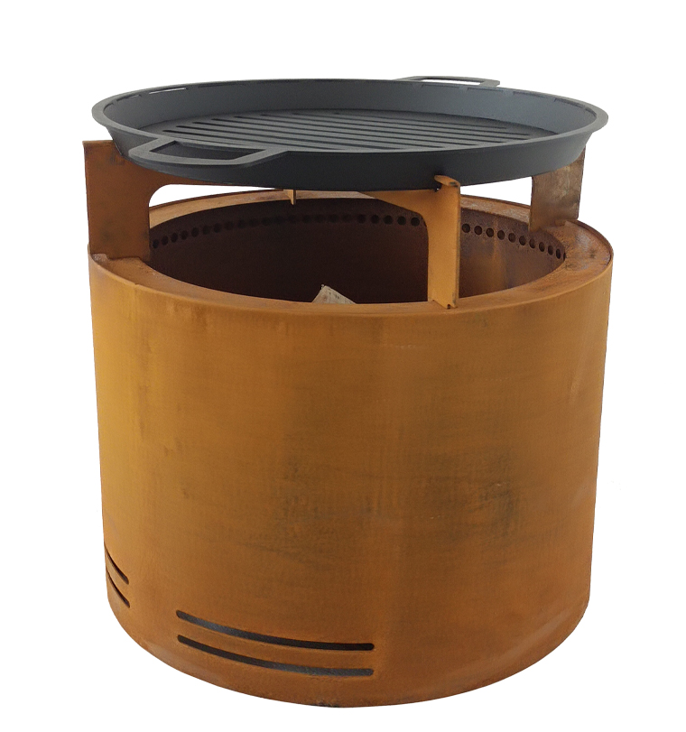 49 cm round corten steel smokeless fire pit, with poker, ash tray, slot stand.