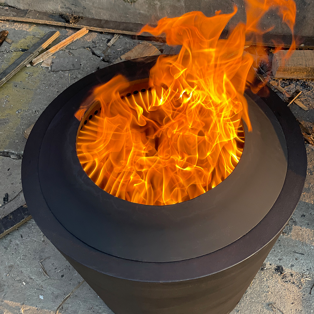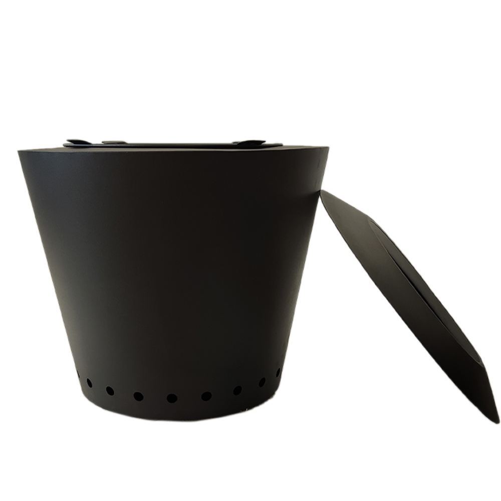 50 cm Conical steel smokeless fire pit with cover ring, burning bucket and poker.