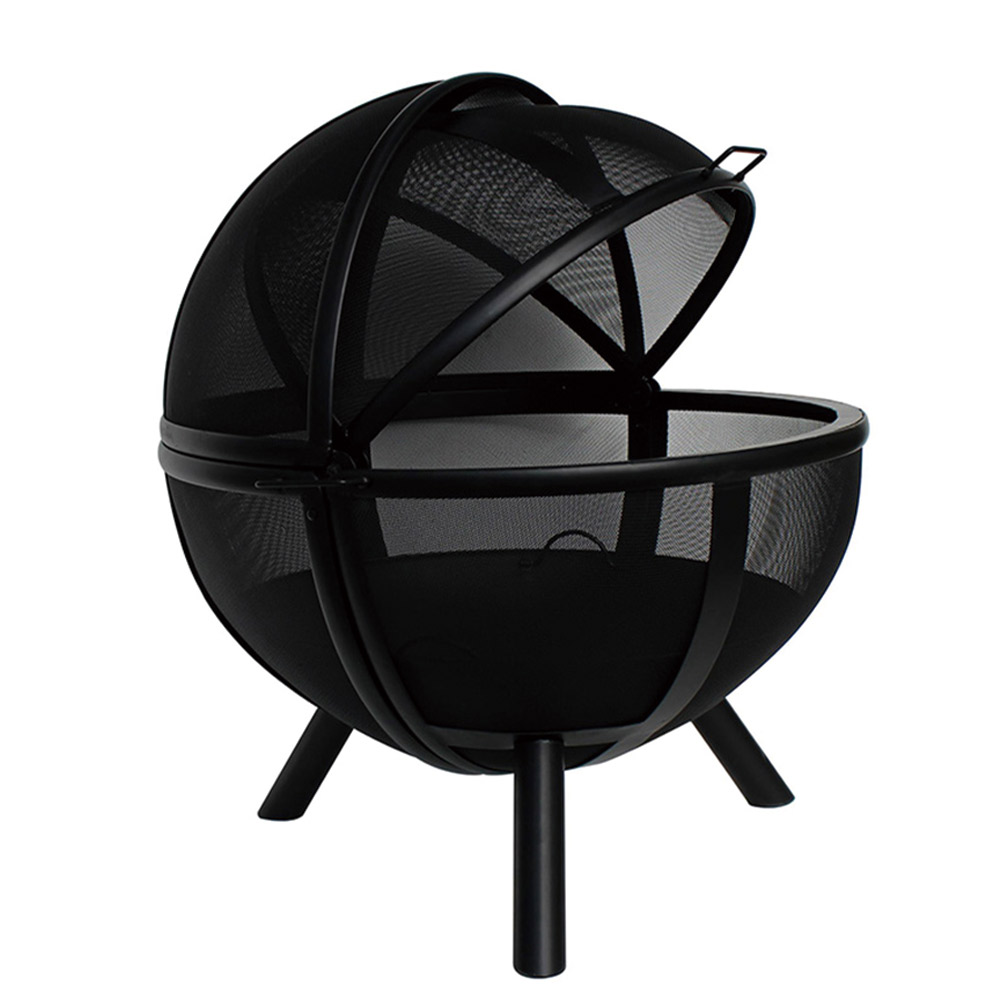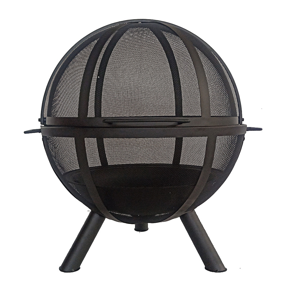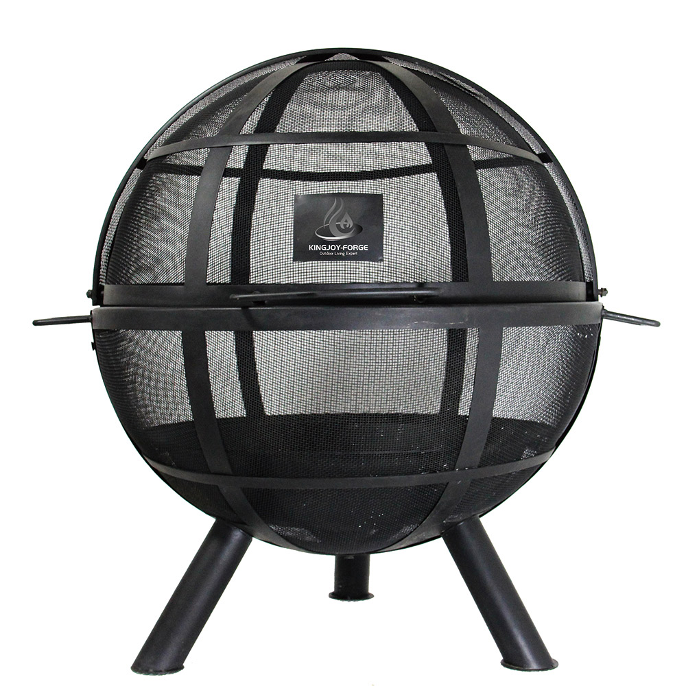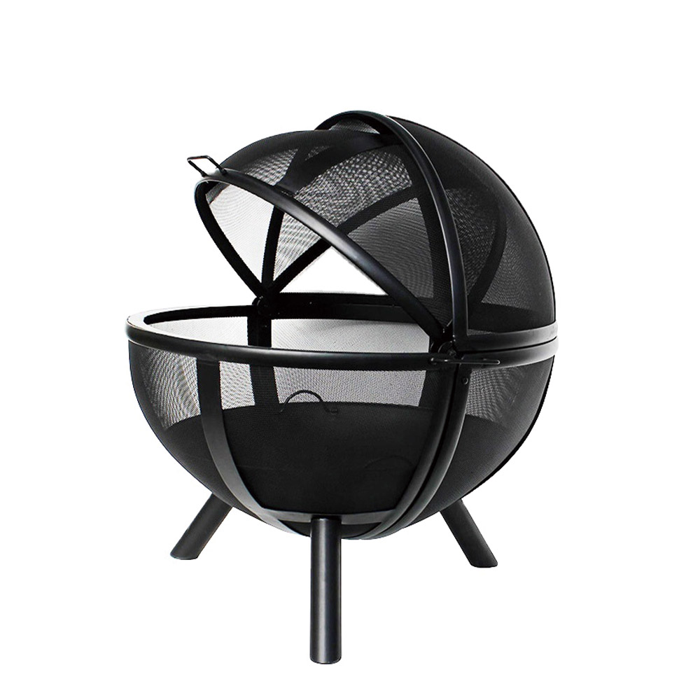 "35“H steel ball folding fire pit, with stick grid, folding mesh cap, poker.