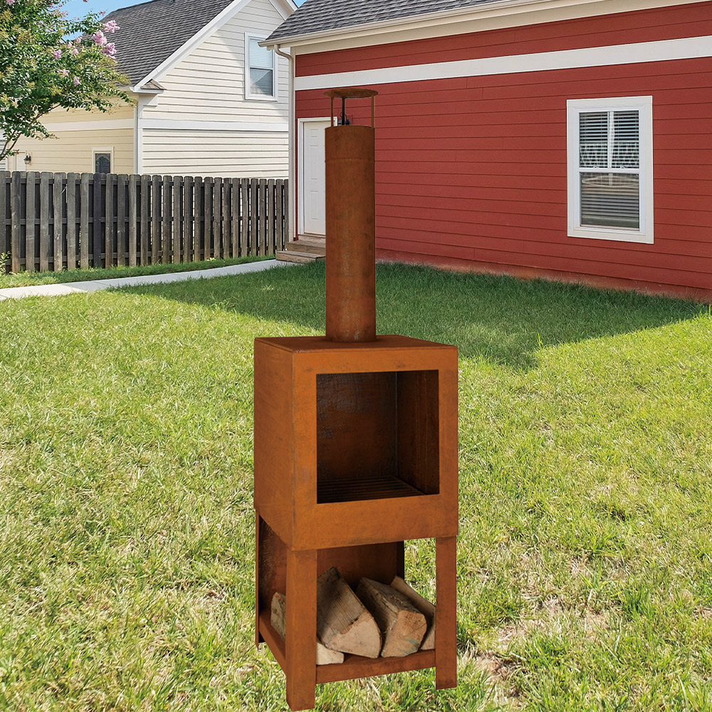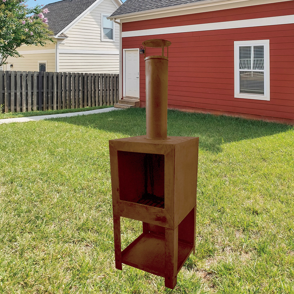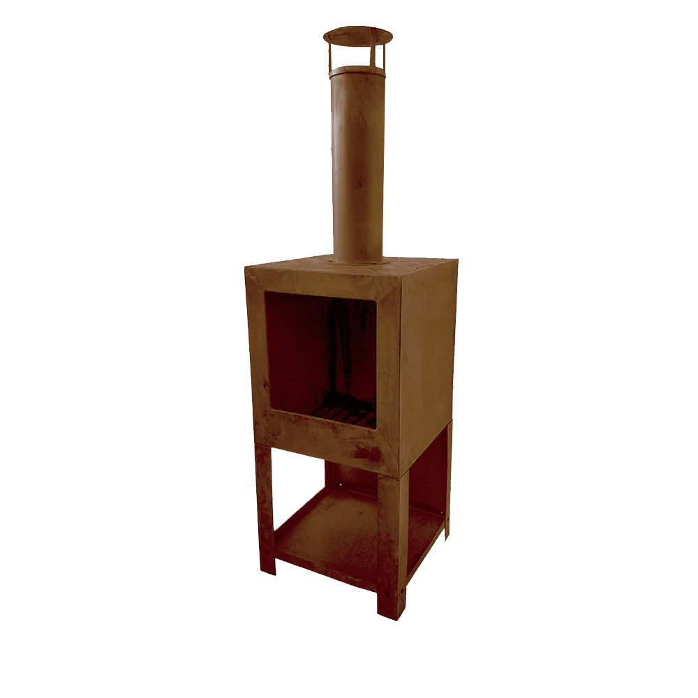 Steel square chinemea. pizza oven, rusty finish