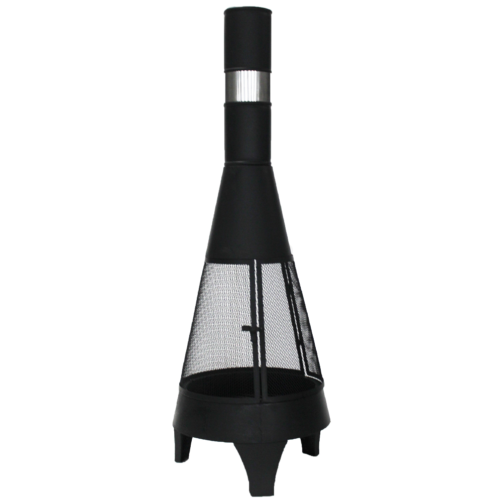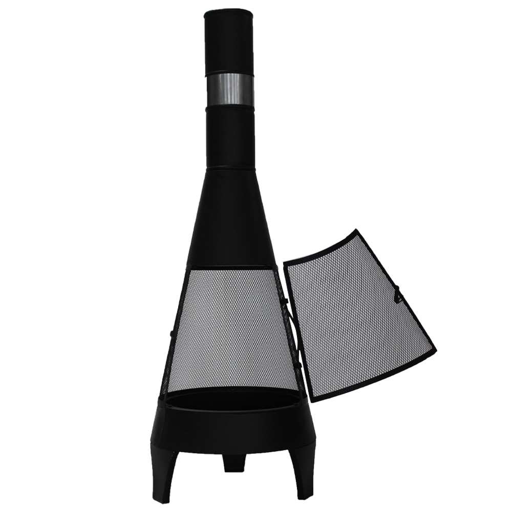 "A modern, minimalistic garden chiminea. The chiminea fire pit works with both logs & charcoal to create the perfect atmosphere. Ideal for long summer evenings, the chimney fire pit has a black powder coating to keep it looking new & stylish for longer. Poker & log grate included.