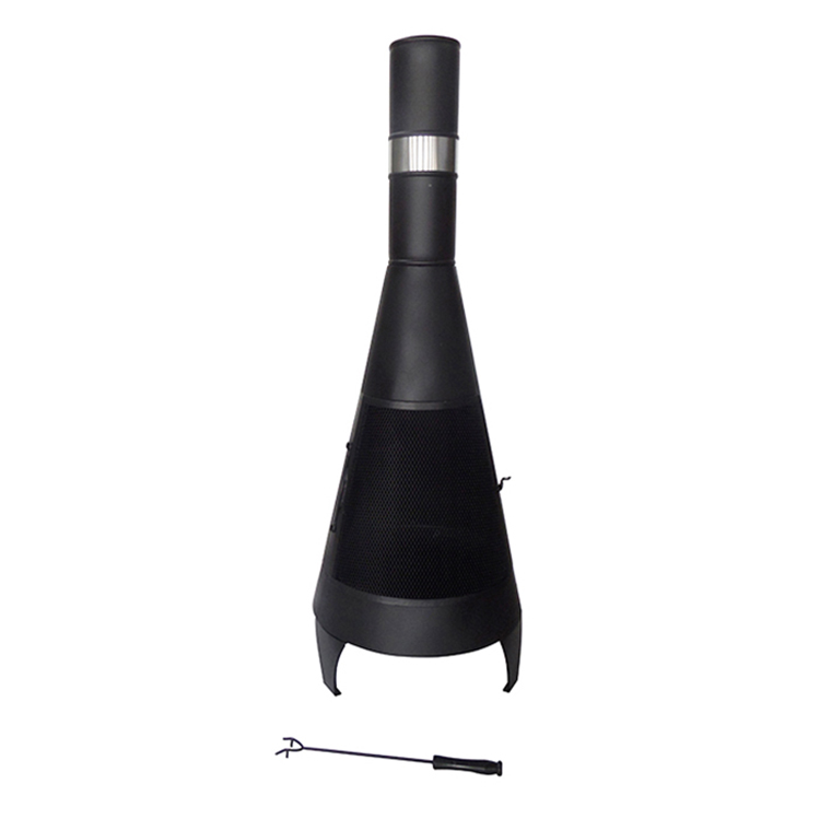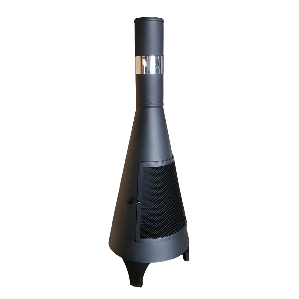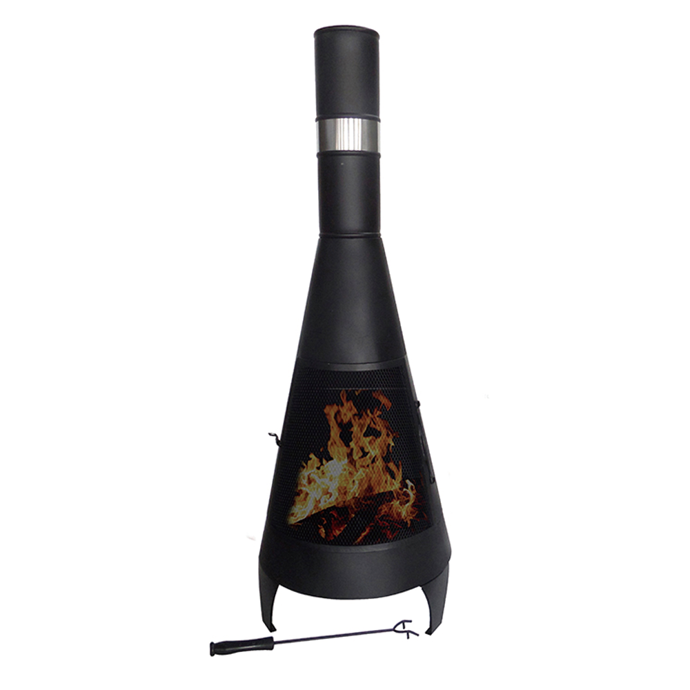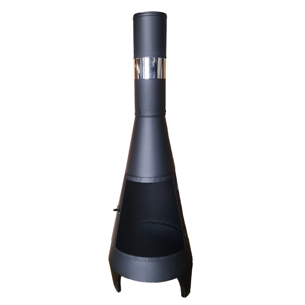 "A modern, minimalistic garden chiminea. The chiminea fire pit works with both logs & charcoal to create the perfect atmosphere. Ideal for long summer evenings, the chimney fire pit has a black powder coating to keep it looking new & stylish for longer. Poker & log grate included.