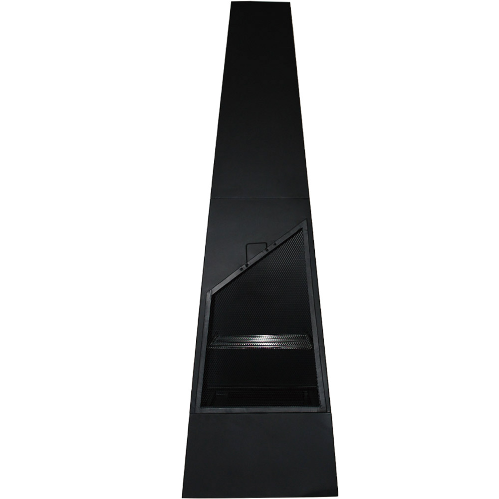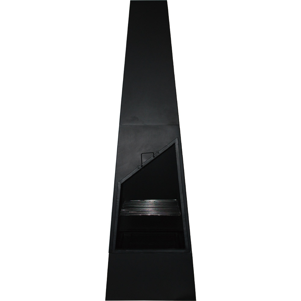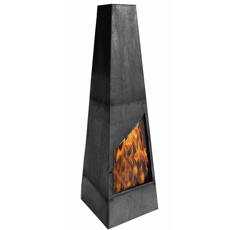 "Steel chiminea with a modern, minimalistic appearance. The backyard chimney fire pit has log storage, so your logs can remain close by. Large chiminea comes with a poker & log chiminea grate. Optional cover upgrade available to further protect your chiminea fire pit when not in use.