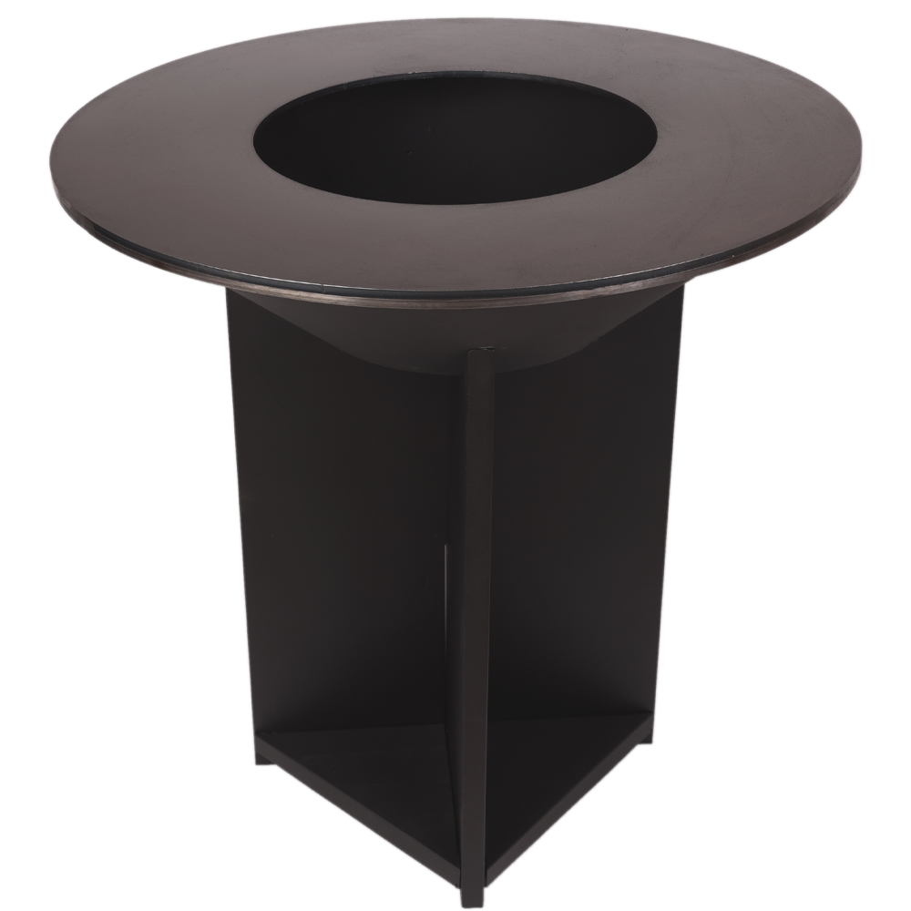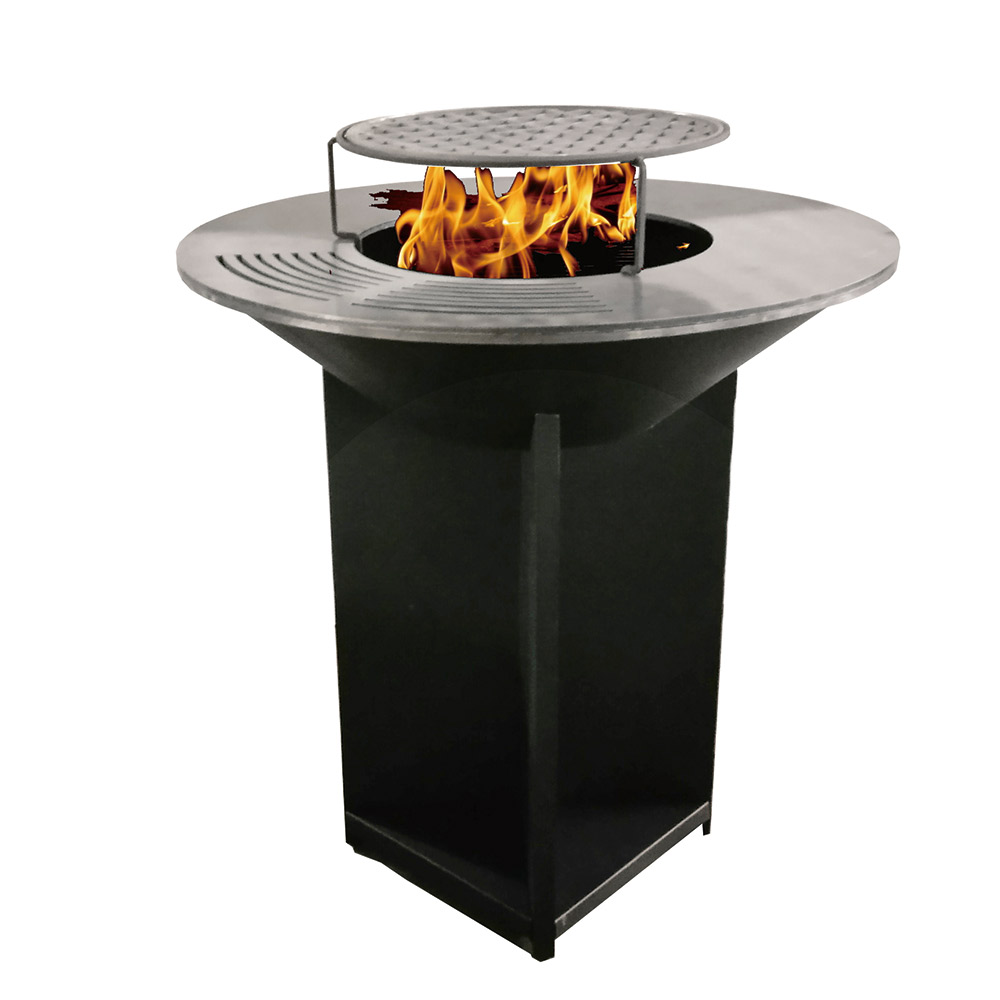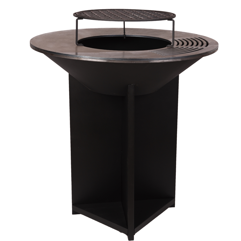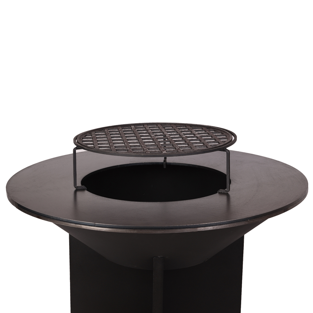carbon steel revised base, with log rack, stick grid and poker with cast iron bbq grid"