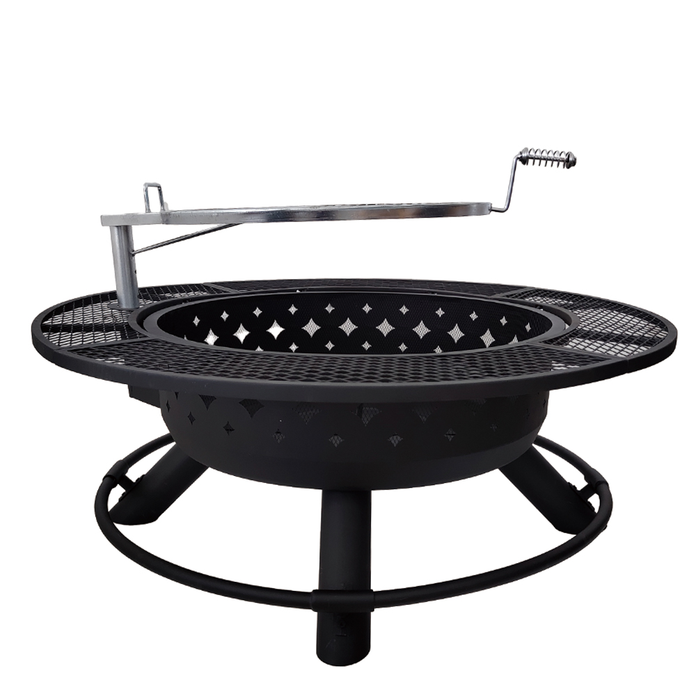 "Dia.81cm table ring with Dia.22"" steel fire pit, depth 8""steel fire bowl with decorative customized pattern, Chromed BBQ cooking grate swivel 360 degrees