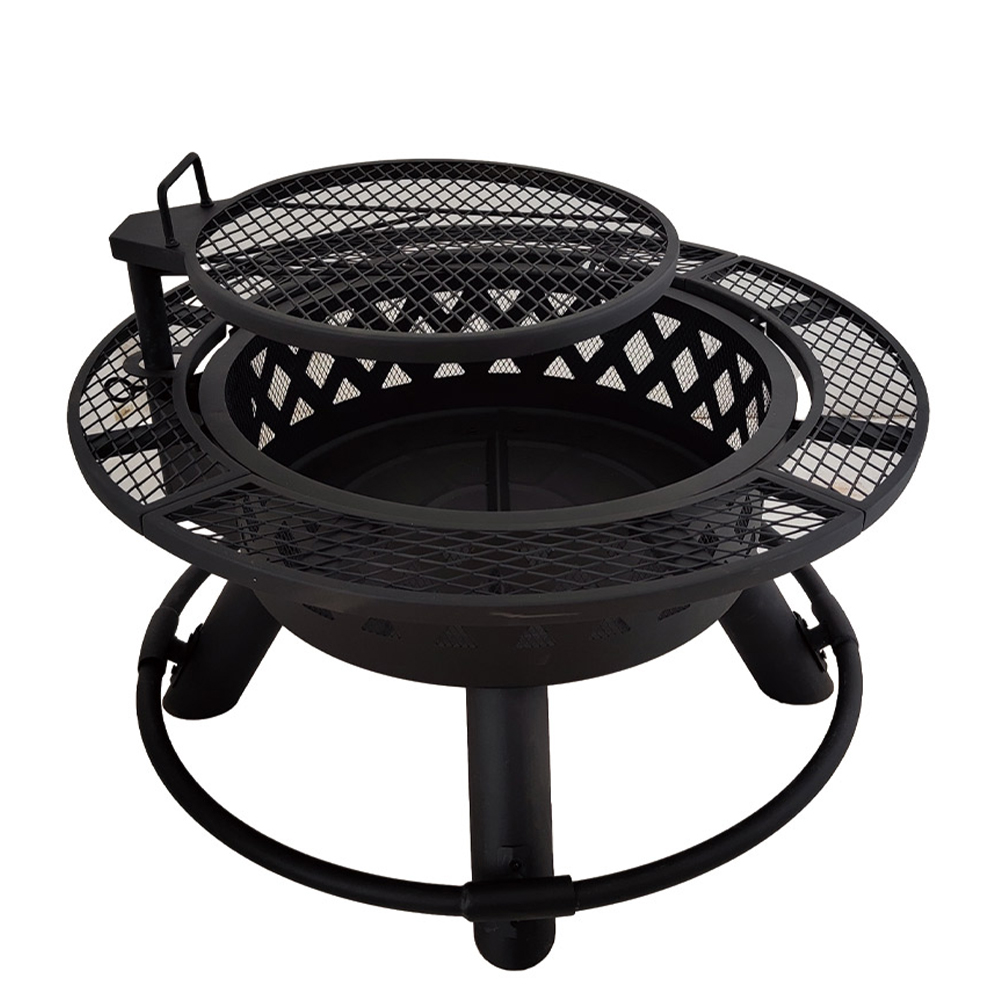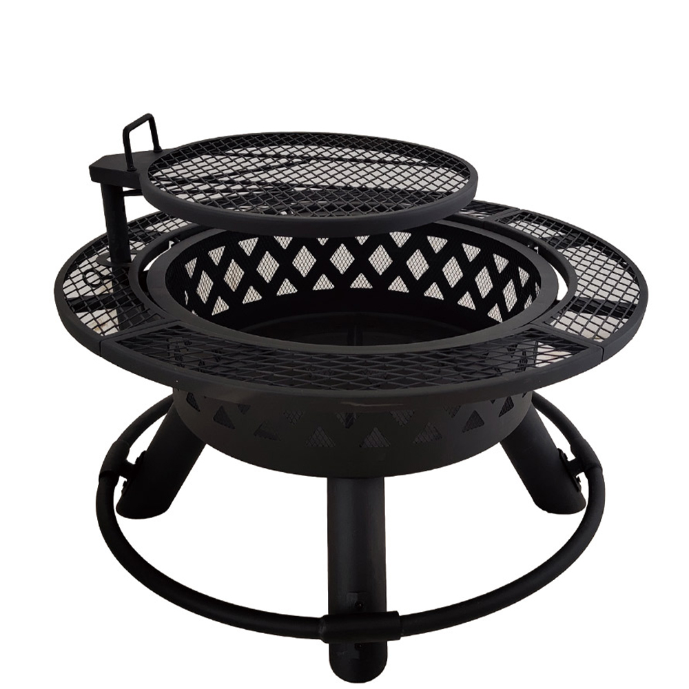 Steel mesh table ring,oversized 4pcs thick legs with round leg ring foot rest, with log grate and poker.