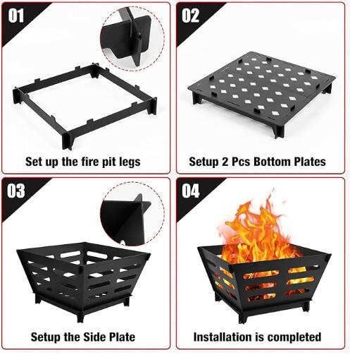 * Easy Use: Easy to Install , The fire pit is very easy to install and it only takes a few minutes to assemble by following the instructions.
